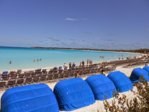 You may be bare on the ship and island because we are at anchor and have arranged to be the only ship there. However, you will need to dress on the ferry that takes you from the ship to the island. This is a bare island beach day and you may be bare everywhere. However, the Bahamians request that we wear something when going through the BBQ lunch buffet on the island and while visiting the shops — a sarong, shorts, or towel will be fine.